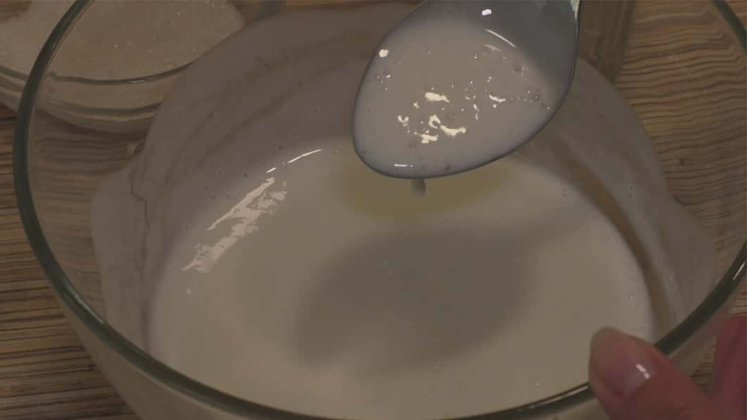 У нас пройшло п’ять хвилин і на поверхні кефіру з’явилися ось такі бульбашки це означає, що сода погасилася.
