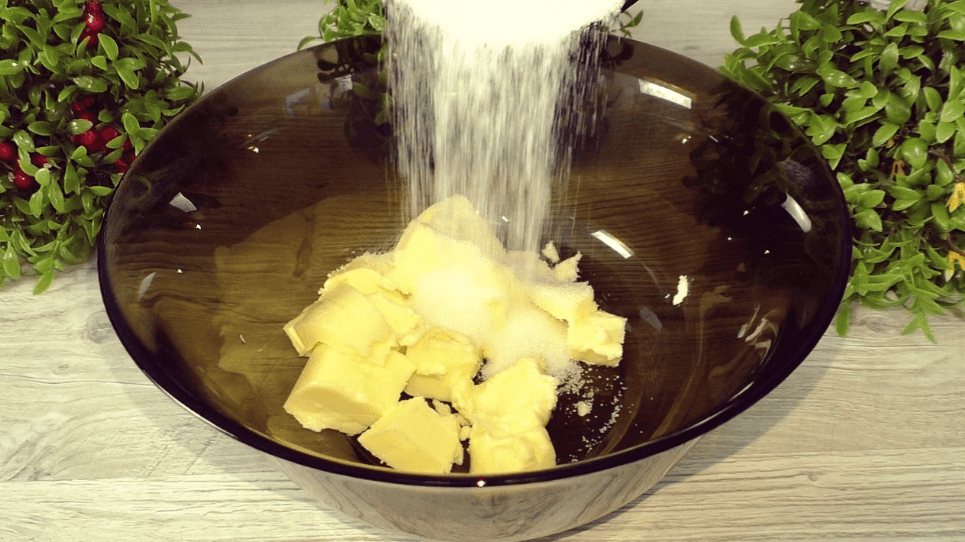 У мисці з’єднуємо м’яке вершкове масло та цукор.