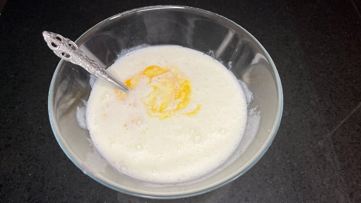 Приступаємо до тіста Змішуємо кефір або сметану ( я взяла кефір ) з яйцями. Додаємо сіль, цукор, і олію.