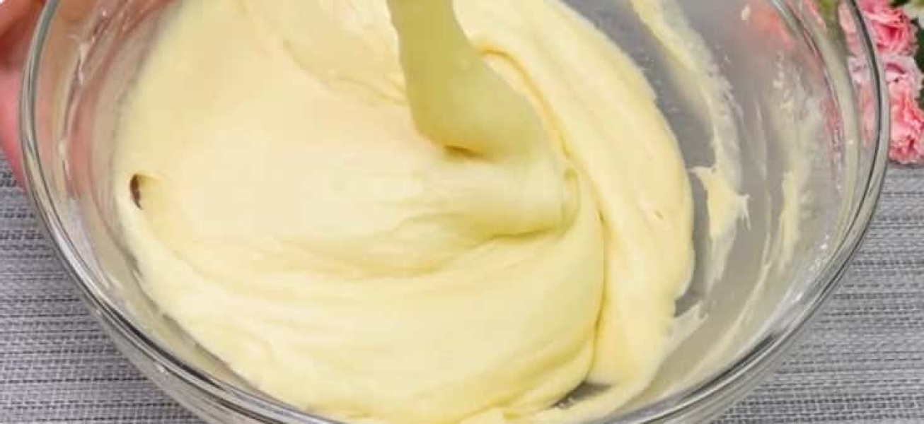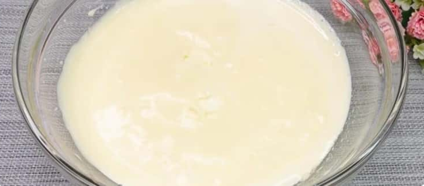 - Кладемо сметану або грецький йогурт, наливаємо топлене масло і ще раз перемішуємо міксером.