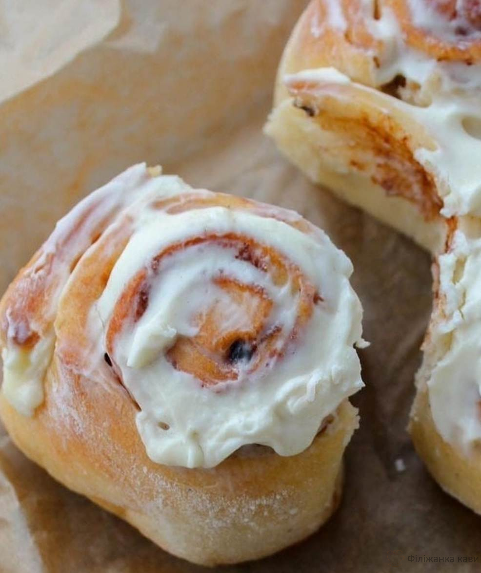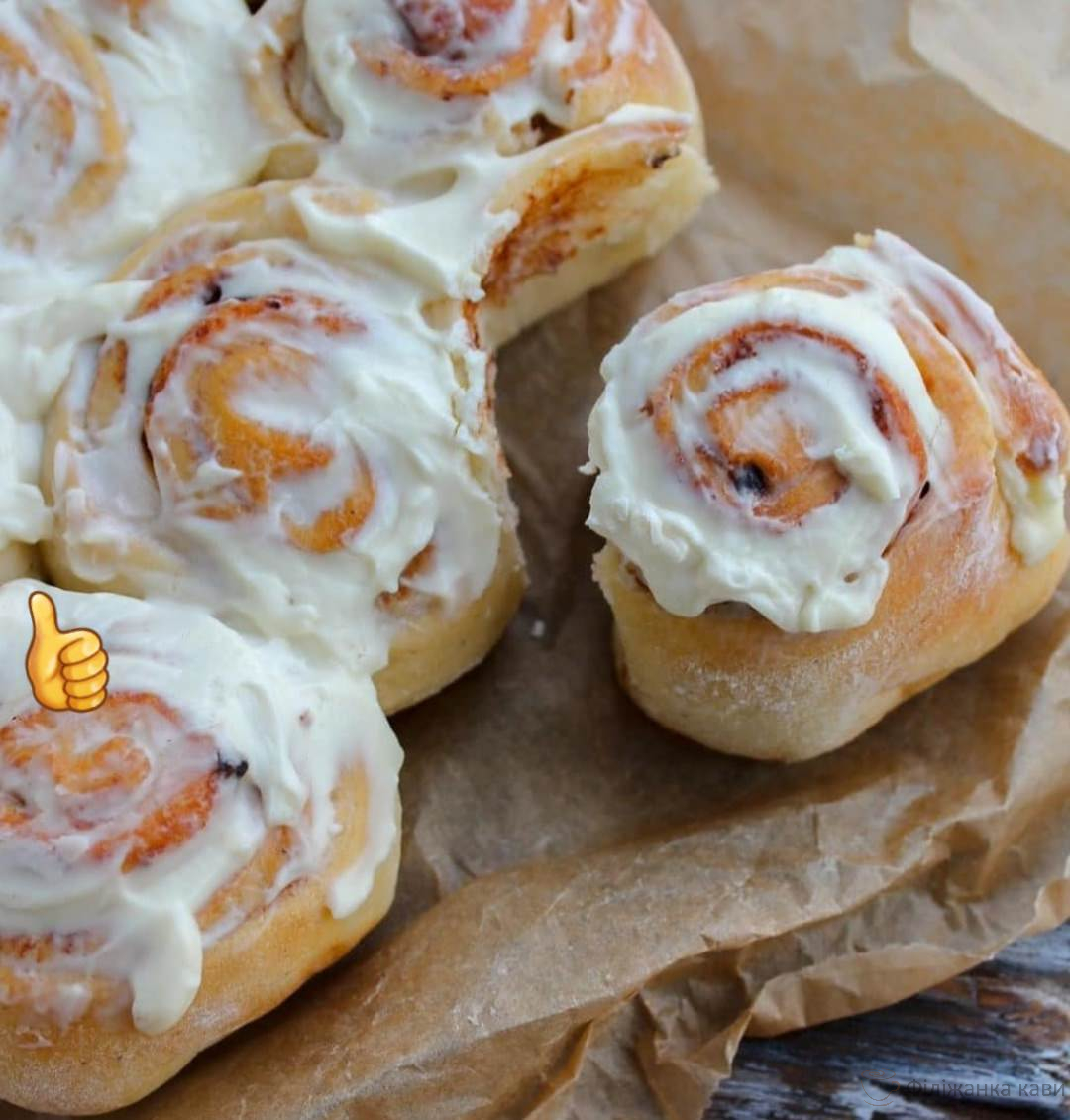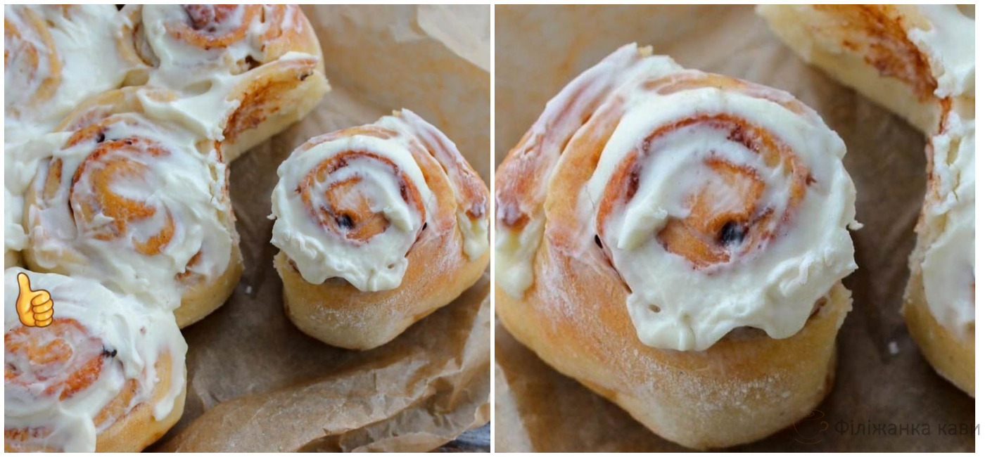 Крем: Все змішати в чаші міксера і поки булочки гарячі, рясно полити їх, дати настоятися і пропітатись.