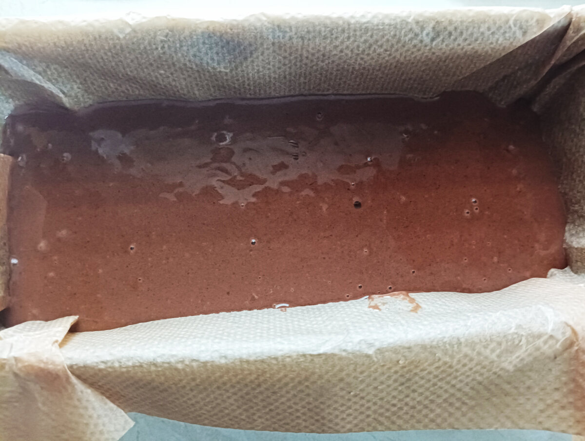 Форму для випічки вистилаю папером. Я використовую прямокутну форму для хліба або кексів. Тісто переливаю в форму.