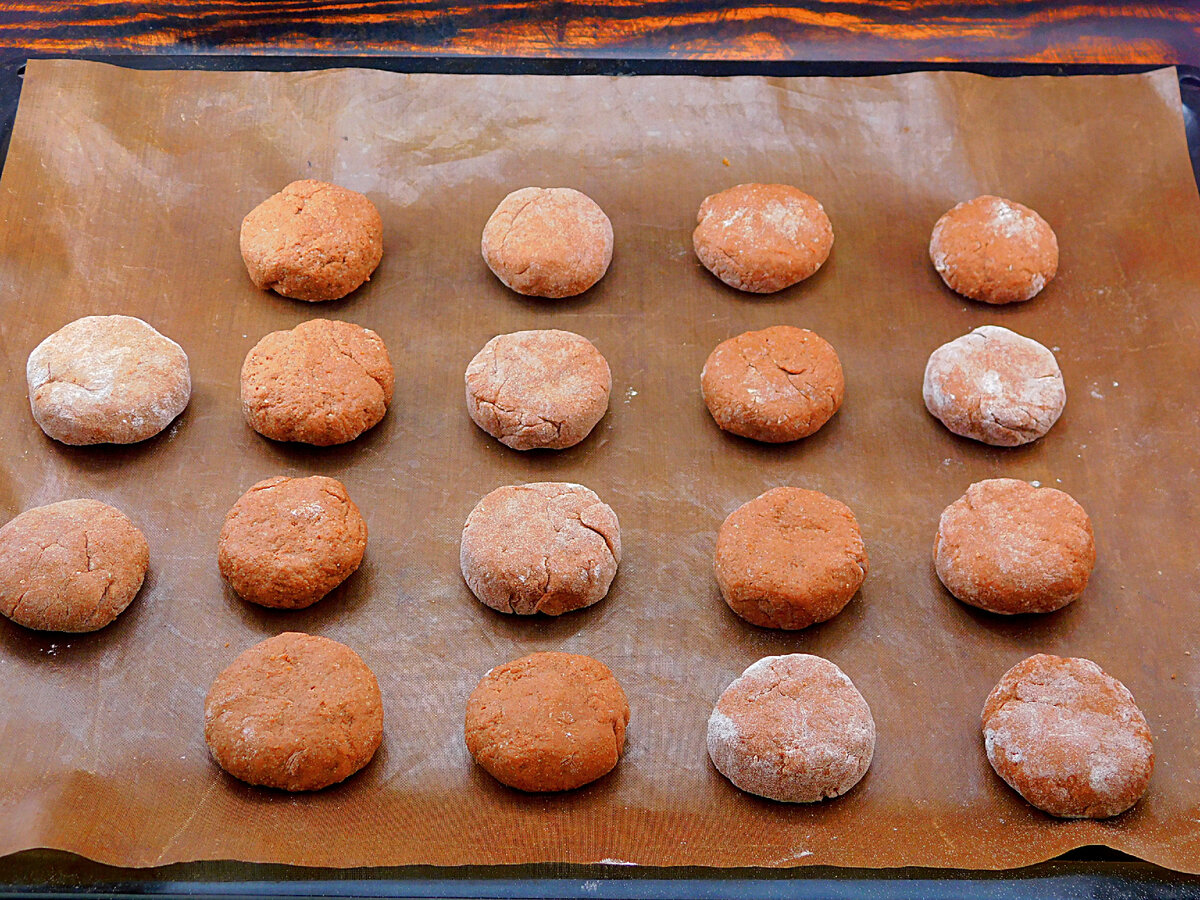 6. Руками відірвати від тіста невеликий шматочок, скачати в кулю і викласти на деко. При необхідності можна трохи присипати долоні борошном.