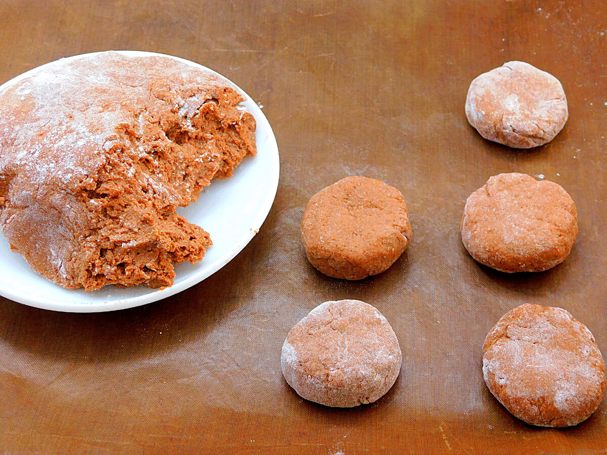 5. Поки комбайн справляється, замішувати в ньому, а потім викласти на тарілку і продовжити руками, підсипаючи борошно. Кількість залежить від вологості сиру, тому стежте за консистенцією. Тісто має вийти трохи липким. З приводу борошна тут діє правило: чим менше, тим краще, так пряники вийдуть м’якшими.