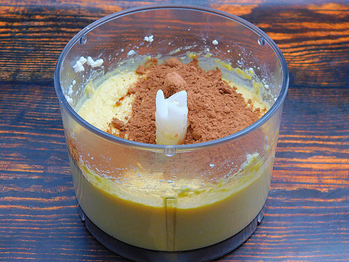 3. Прокрутити пару секунд. Всипати какао порошок і корицю. Також можна за бажанням використовувати і інші спеції. Тут підійдуть імбир, мускатний горіх, гвоздика.