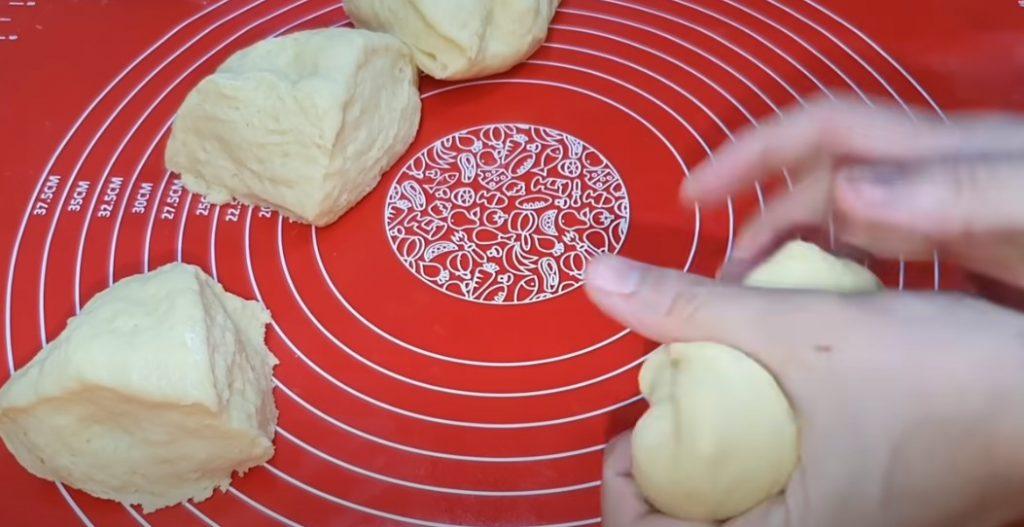 Ділимо тісто на 4 частини і кожну розкачуємо в тонкий пласт, змащуємо розтопленим або розм’якшеним вершковим маслом, посипаємо цукром і складаємо стопкою пласти.