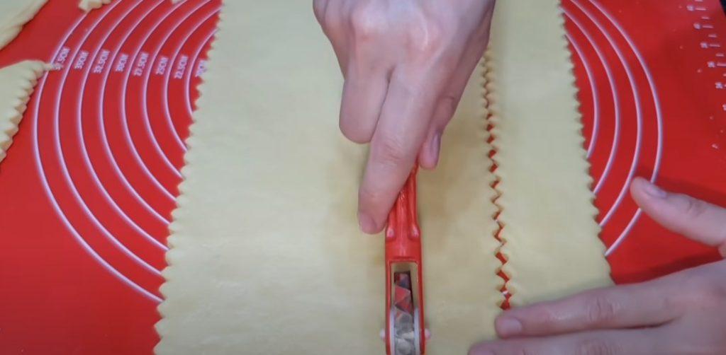 Розкачуємо стопку пластів тіста і ріжемо на квадратики, ромби або вирізаємо за допомогою форм різне печиво.