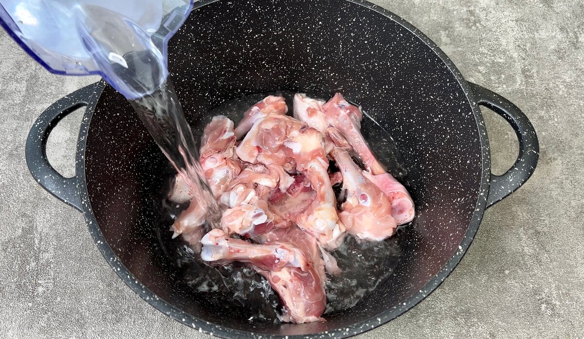 2. Кістки перекладаємо в каструлю, варимо бульйон і, по готовності, повністю остуджуємо.