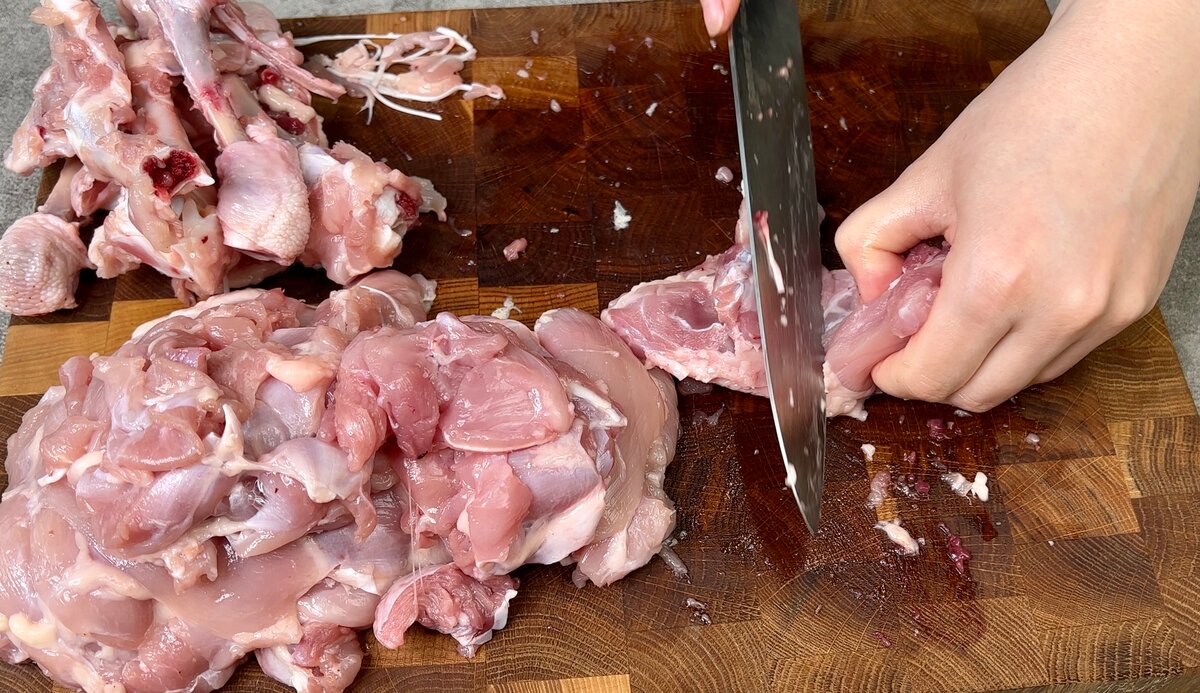 1. З стегенець знімаємо шкірку і відокремлюємо м’ясо від кісток.