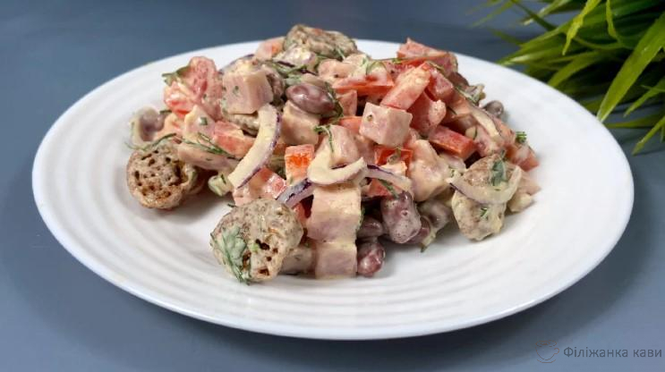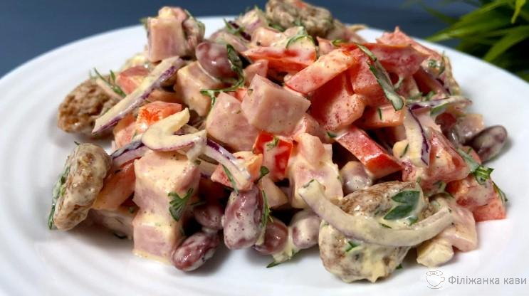 Сьогодні пропоную вашій увазі простий у приготуванні і дуже смачний салат із квасолею та сухариками на кожен день. Хоча навіть на святковому столі цей салат не губиться і його їдять із задоволенням та запитують рецепт.