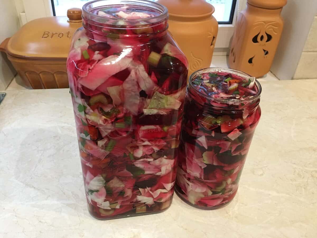 Хоча, можна і про спосіб приготування поговорити. Хтось спочатку обварюємо овочі, а потім заливаємо холодним розсолом, а хтось заливає відразу киплячим розсолом. Єдине правило — оцет не додається, якщо готуєте за класичним рецептом.
