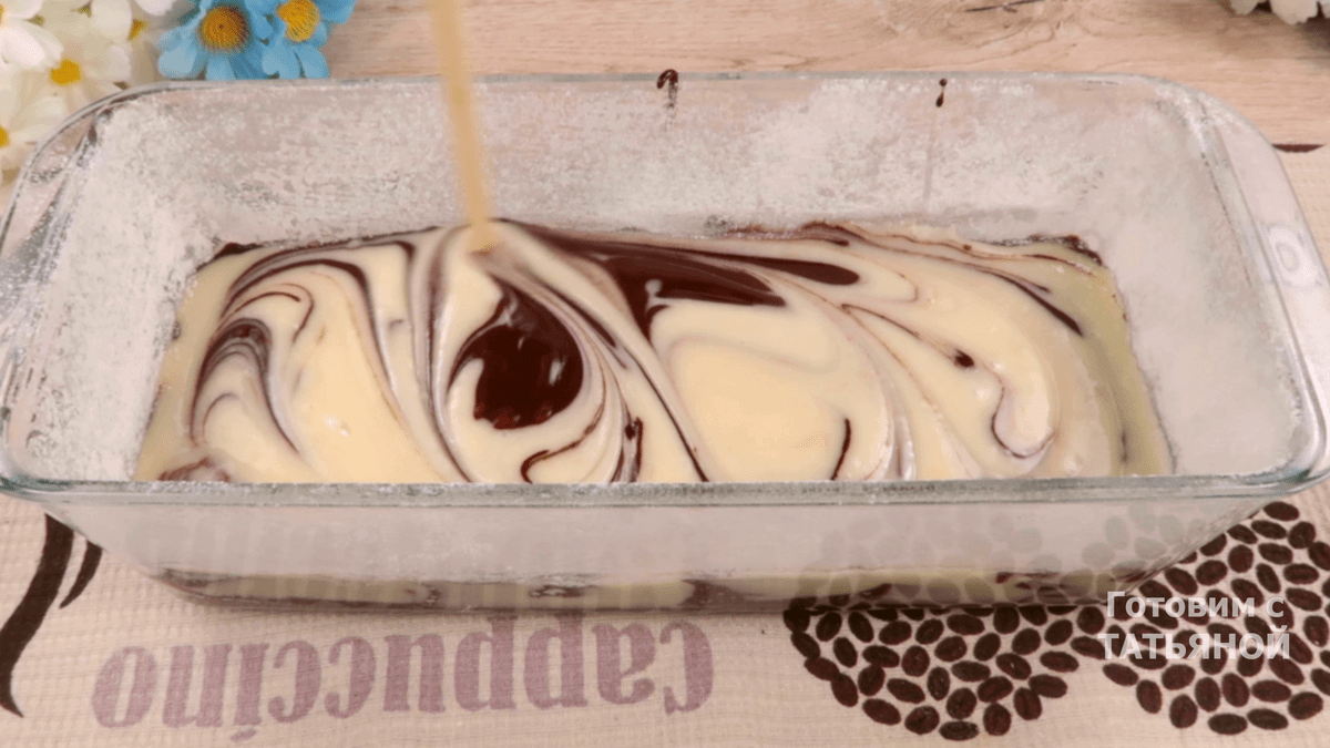 Викладаю тісто в підготовлену форму для кексу. Чергую світлі і темні шари