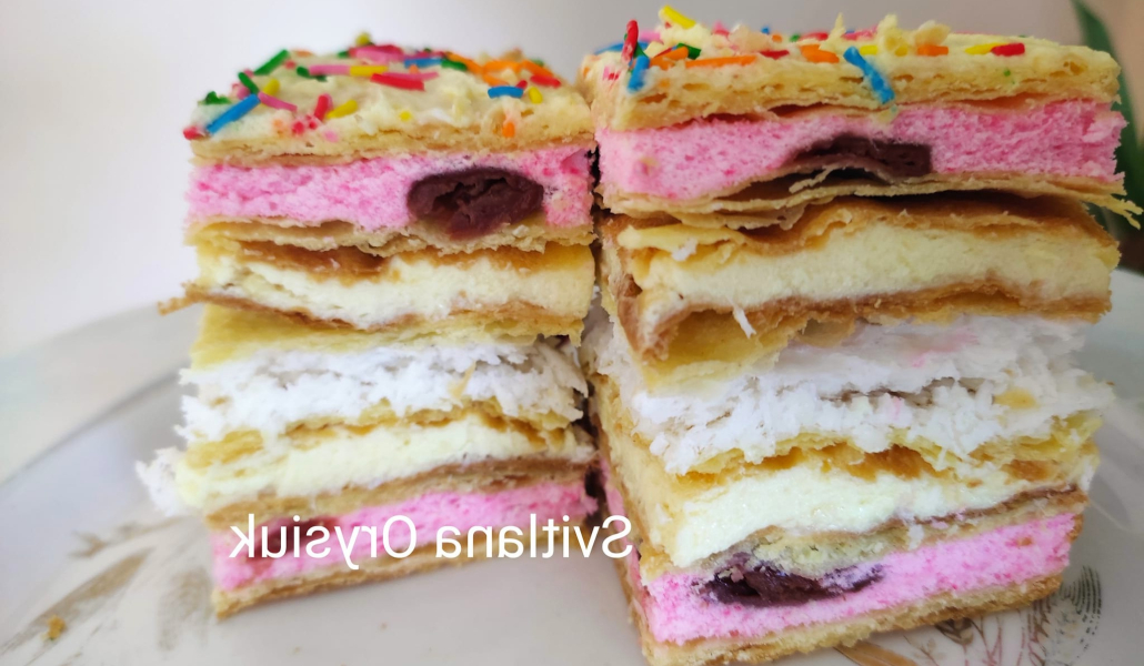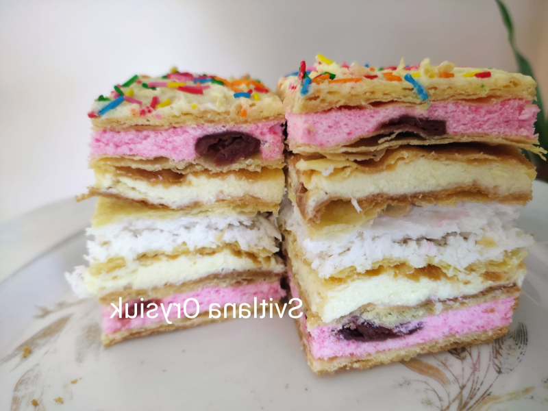 Вийде два коржі з вишневою начинкою і один (середній) корж з кокосом.