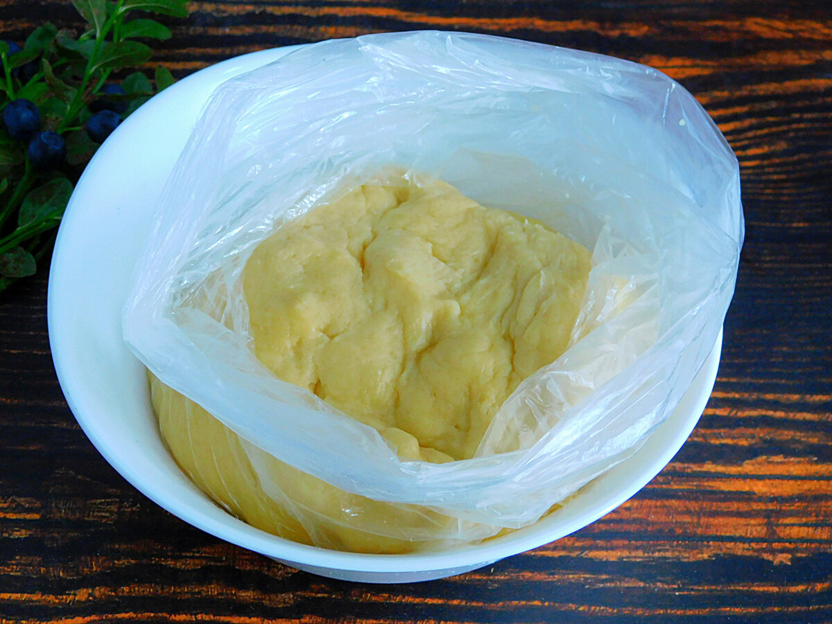 3. Змішати до отримання м’якого, але не липкого, тіста. Помістити його в целофановий пакет і прибрати в холодильник на 30 хвилин. Таке пісочне тісто можна зробити і напередодні, воно прекрасно зберігається в холоді до доби.