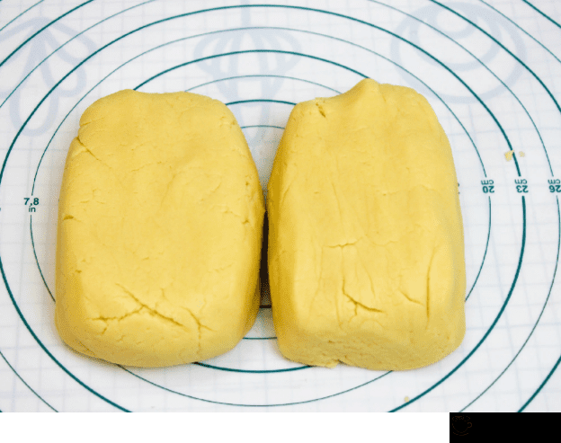 Сметанну суміш і борошняну крихту з’єднати і замісити м’яке тісто. Тісто розділити на дві частини, загорнути в плівку та відправити в холодильник приблизно на 1 годину.
