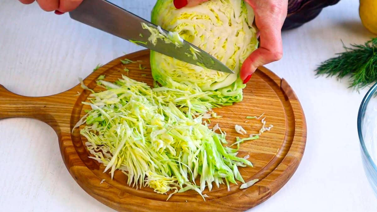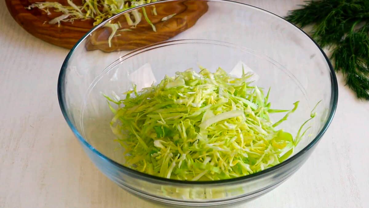 Нарізаємо соломкою молоду капусту і викладаємо в миску.