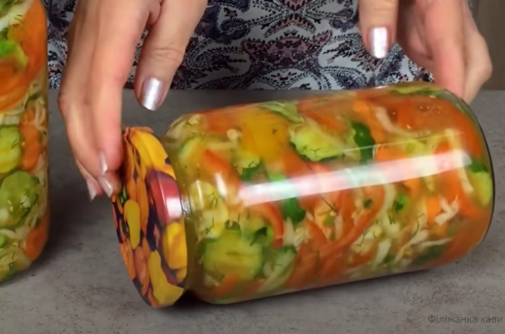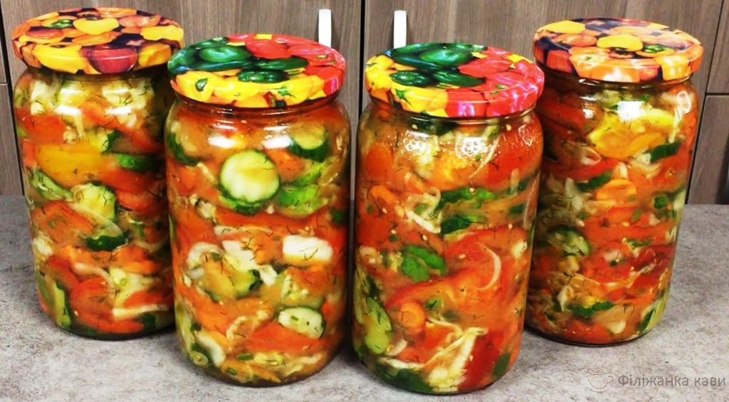 Таке овочеве асорті – це не тільки зручно і практично, а ще й дуже смачно: відкриваєш баночку, і відразу по хаті аромат свіжого, дуже апетитного, літнього салату з овочів.