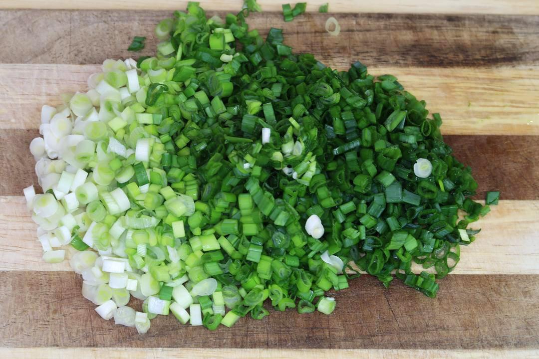 Нарізаємо зелену цибулю і викладаємо третім шаром. Зверху робимо сітку з майонезу.
