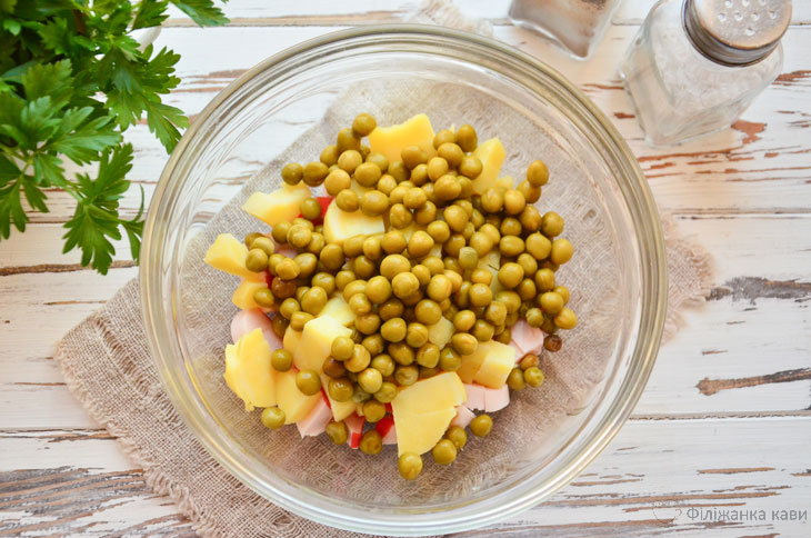 3. Потрібна кількість консервованого горошку перекладіть в миску.