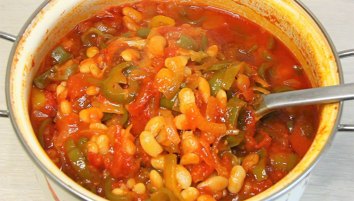 Для приготування потрібно заздалегідь замочити квасолю в теплій воді на ніч, потім зварити до напівготовності. Краще використовувати білу. Помідори можна прокрутити на м’ясорубці ( якщо когось бентежить шкірка ) або просто нарізати.