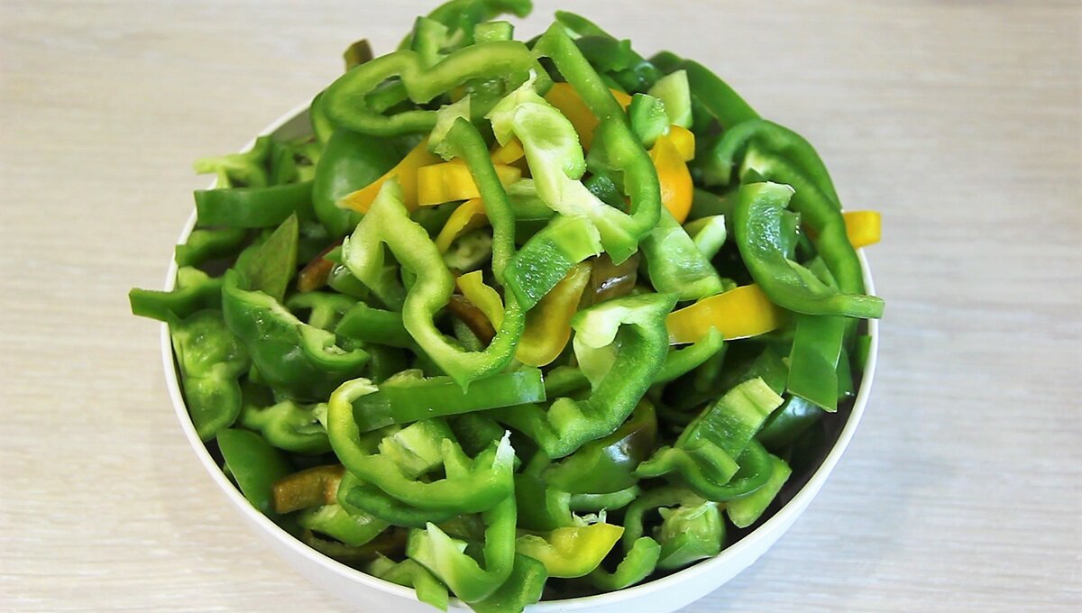 Солодкий болгарський перець наріжте соломкою або будь-яким зручним способом.