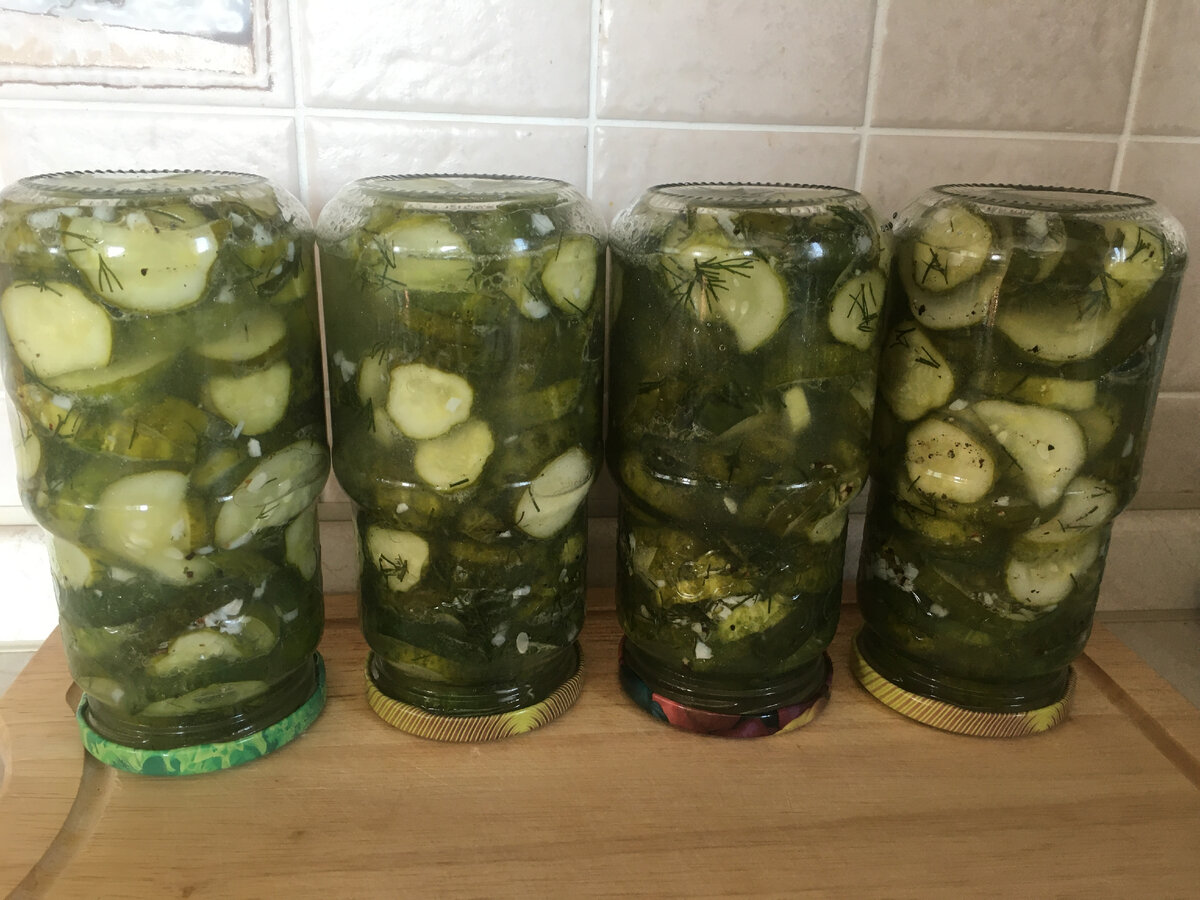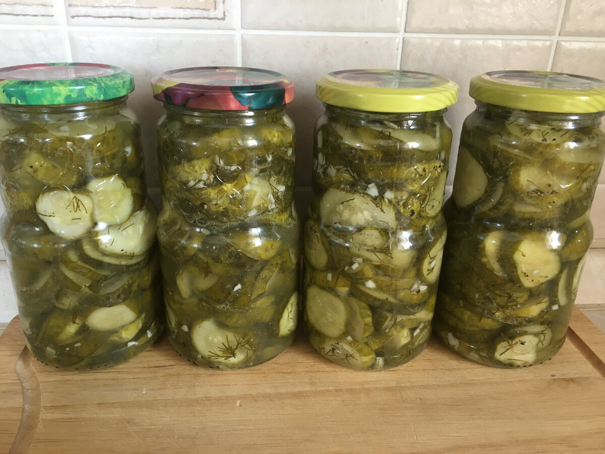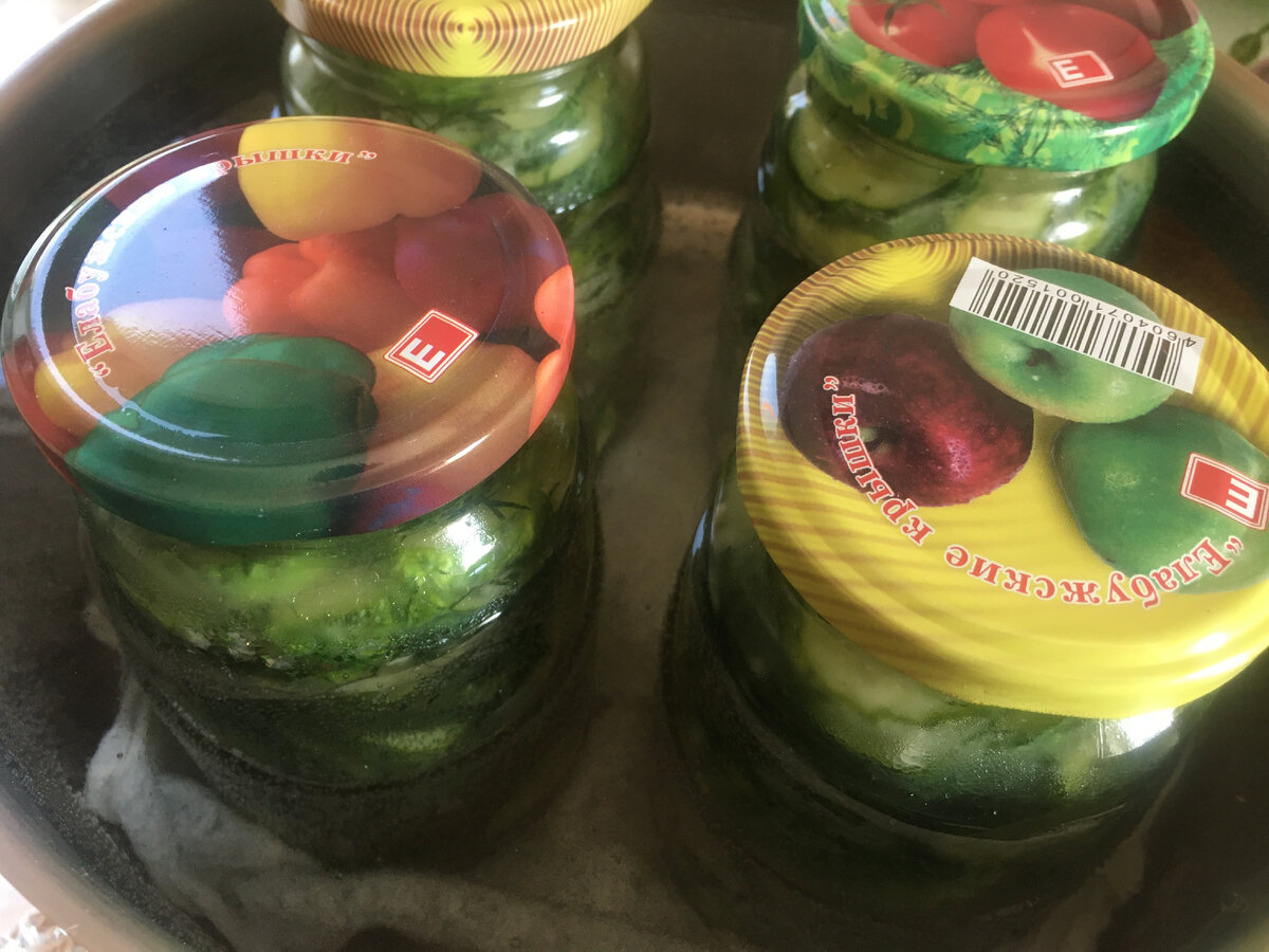 Якщо є підвал, то банки можна не накривати, а просто остудити і прибрати на зберігання. Огірочки в салаті виходять малосольного пікантного смаку. Ну дуже смачно нам.