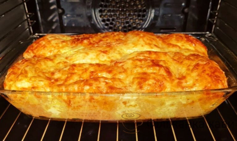 Готовий пиріг виймаємо з форми і нарізаємо на шматочки. Це дуже смачно, зверху хрустка скоринка а всередині м’який ніжний пиріг!