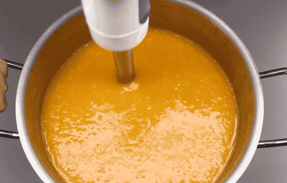 Як тільки гарбуз став м’яким, вимикаємо плиту і пробиваємо все занурювальним блендером до однорідного стану.