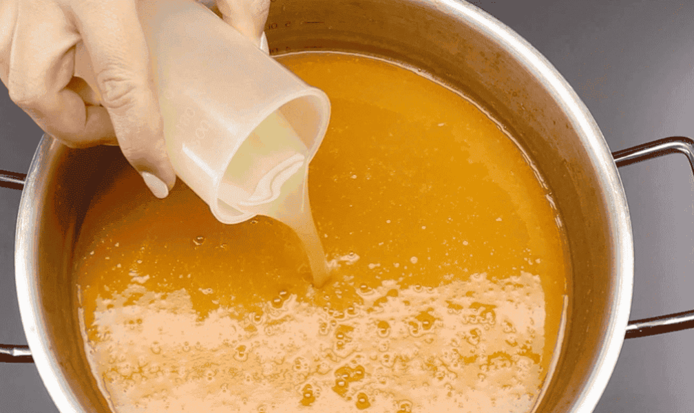 Потім у сік висипаємо цукор. На 3,3 л напою кладу 300 г цукру. За бажанням цукор у сік можна не класти. Тепер для смаку додаємо сік двох апельсинів, а як консервант – сік одного лимона. Замість лимонного соку можна покласти лимонну кислоту.