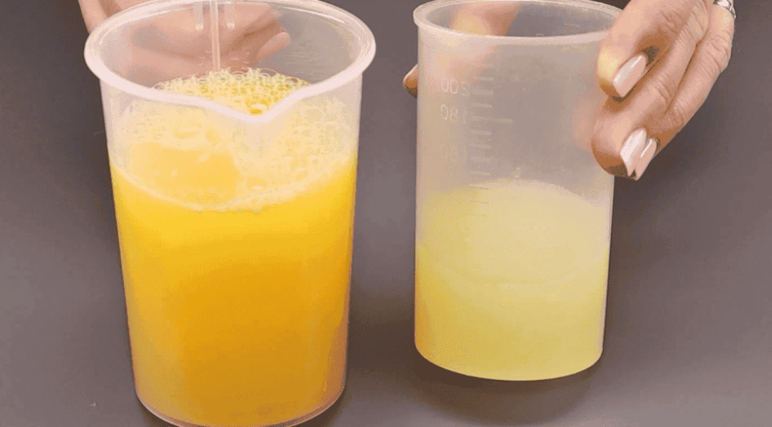 Також нам знадобиться 2 апельсини та 1 лимон. Видавлюємо із них сік і переливаємо у склянки.