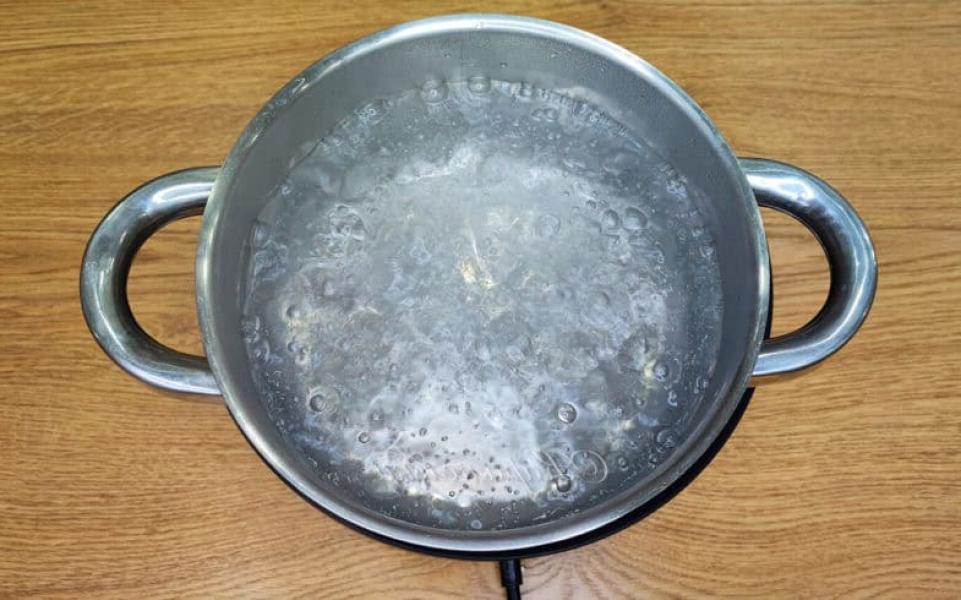 Потім ставимо ємність із водою на плиту і доводимо до кипіння.