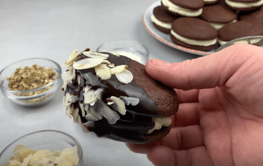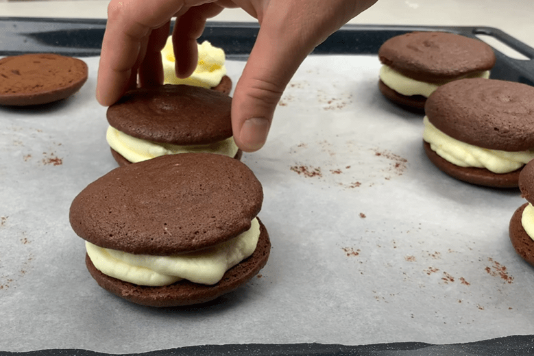 Кожне печиво накриваємо зверху іншим печивом, злегка придавивши. Повністю остудити печиво. Можна відправити в морозилку приблизно на 20 хвилин.