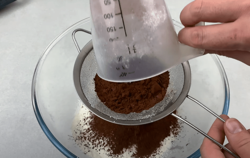 Просіюємо какао, додаємо ванільний цукор і цукрову пудру.
