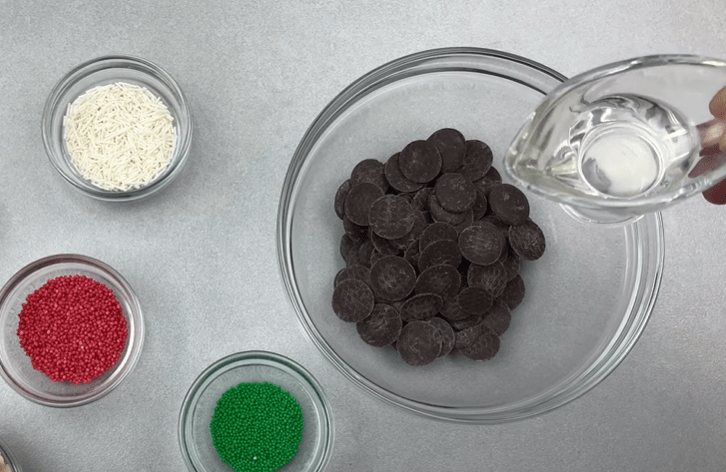 У маленькі ємності насипаємо подрібнені горіхи, кокосову стружку або іншу присипку.