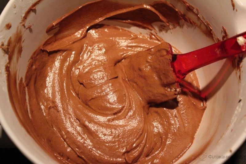 - Підмісити в крем-масу какао і ароматизатор, збивати, поки суміш не буде достатньо гладкою і пишною.