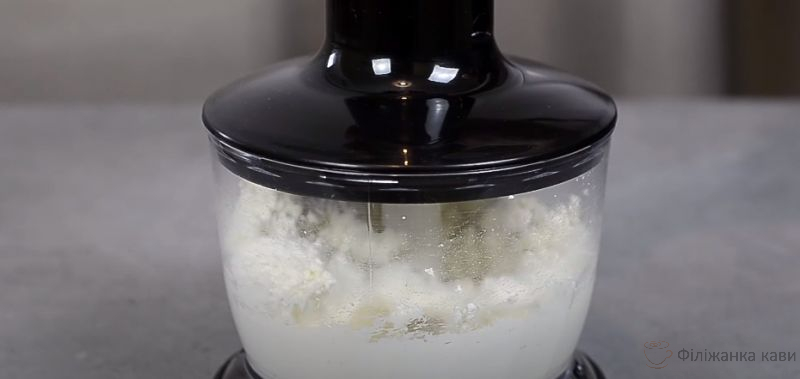 - З’єднати молочну і сирну суміш і перемішати. Збити міксером, поки маса не стане пишною і не буде осідати.
