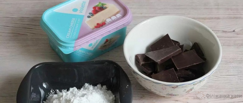- У чисту каструлю, яка є абсолютно сухою з’єднати цукрову пудру з сиром. Збити міксером протягом 2 хвилин на середніх оборотах.