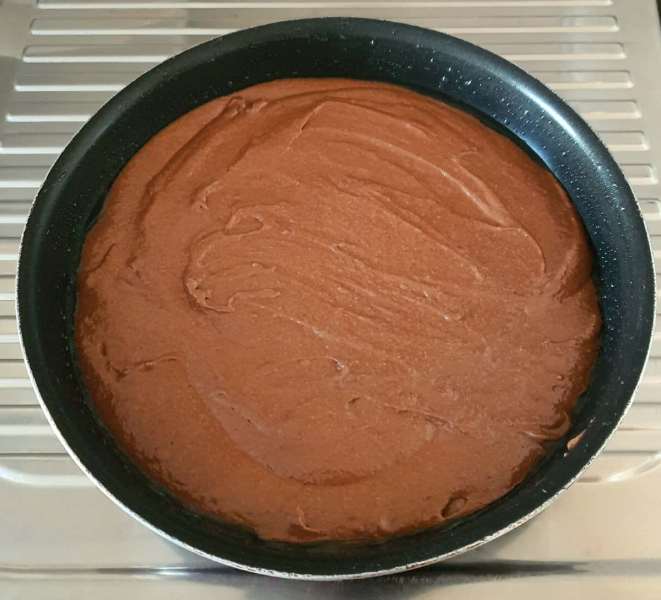 Вилити в форму половину тіста.