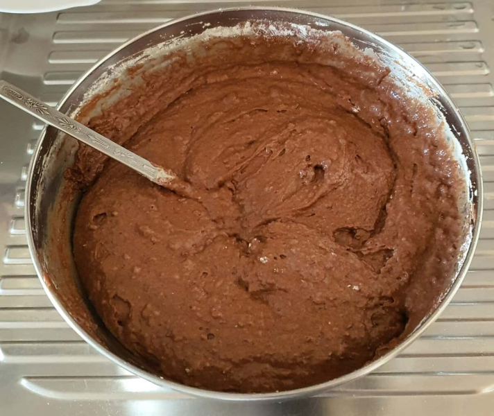 Випікати шоколадний манник в заздалегідь розігрітій до 180 градусів духовці близько 45-55 хвилин. Якщо ви помітили що верх кексу досить запікся, а середина кексу все ще сира, накрийте кекс фольгою і випікайте ще 20 хвилин до повної готовності.