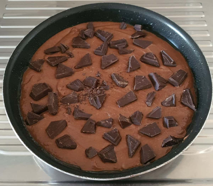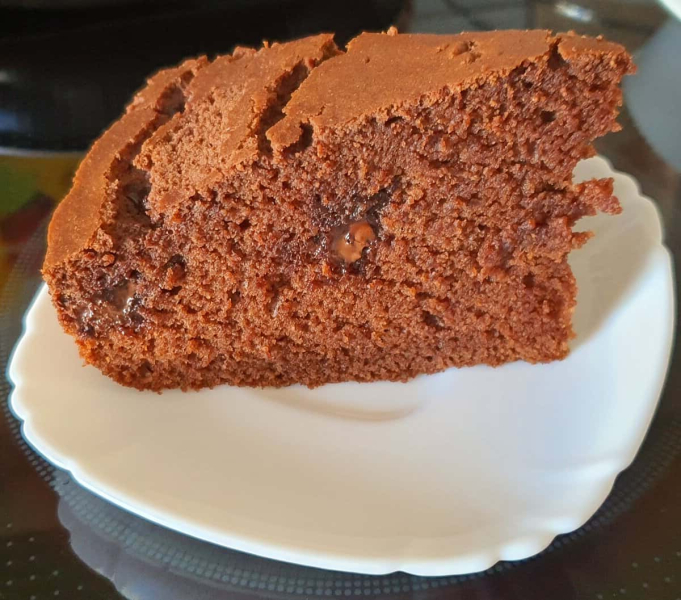 Цей кекс з шматочками шоколаду, дуже простий в приготуванні, але від цього не менш смачний. За структурою дуже ніжний і вологий всередині, з найтоншою хрусткою скоринкою зовні і острівцями рідкого шоколаду.