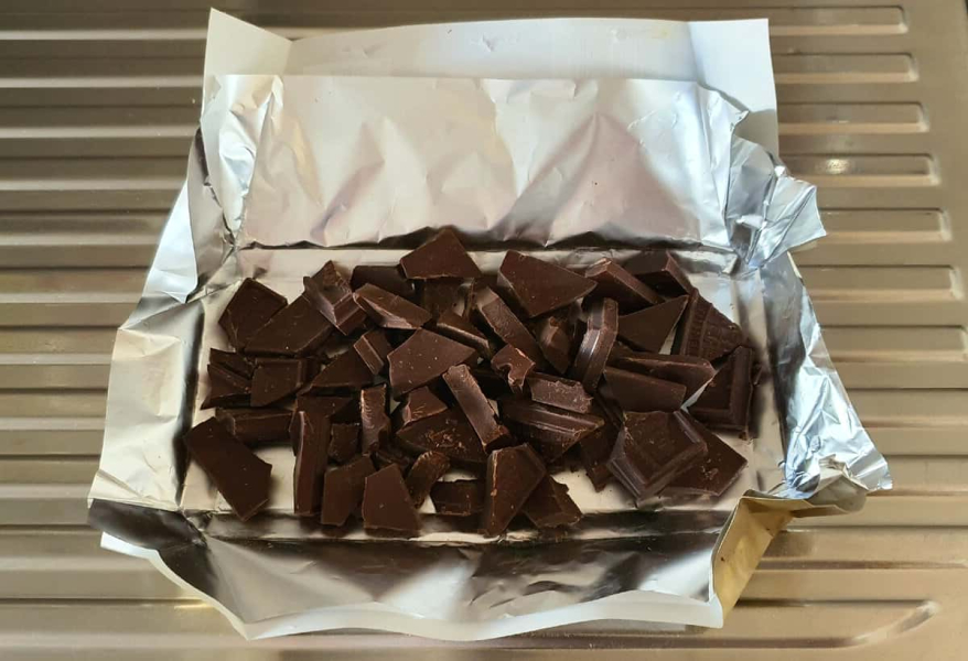 Плитку шоколаду розламати на досить великі шматочки.