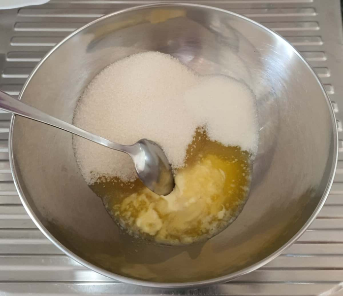 До вершкового масла кімнатної температури додати цукор, сіль, ванільний цукор.