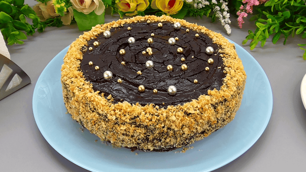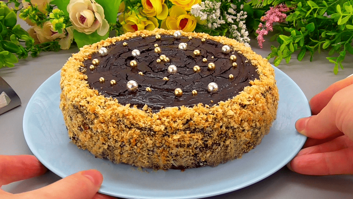 ✅ Прикраса — на ваш розсуд. Я прикрасила пиріг залишками крихти ( у мене залишалася вона від іншого рецепта ) і кондитерськими намистинками. Можна присипати пиріг горішками або чимось ще.