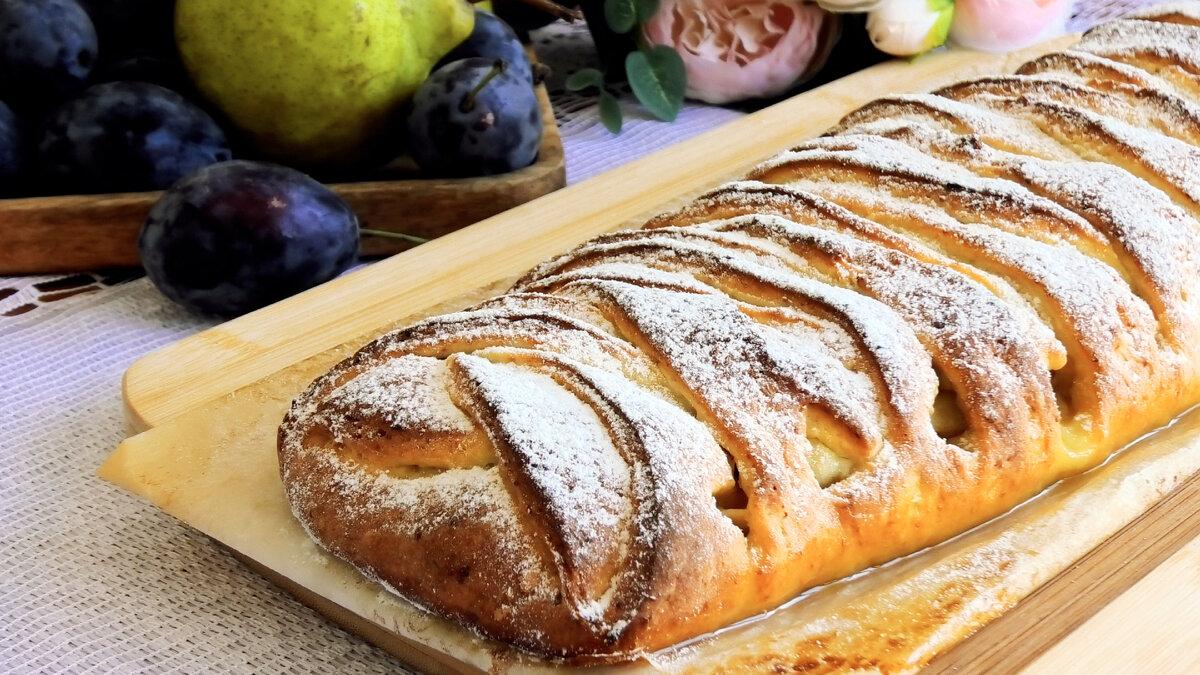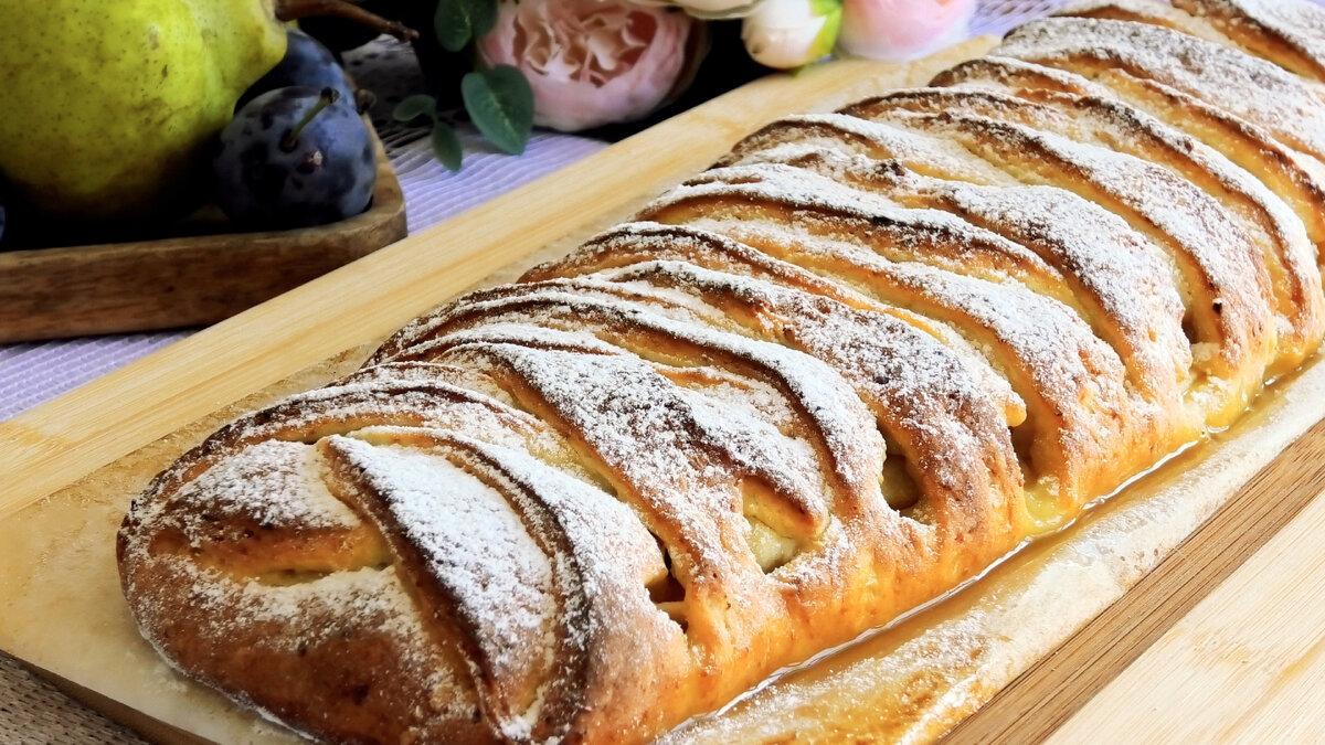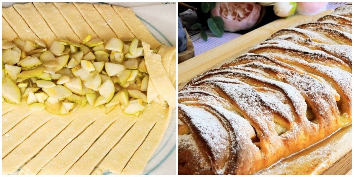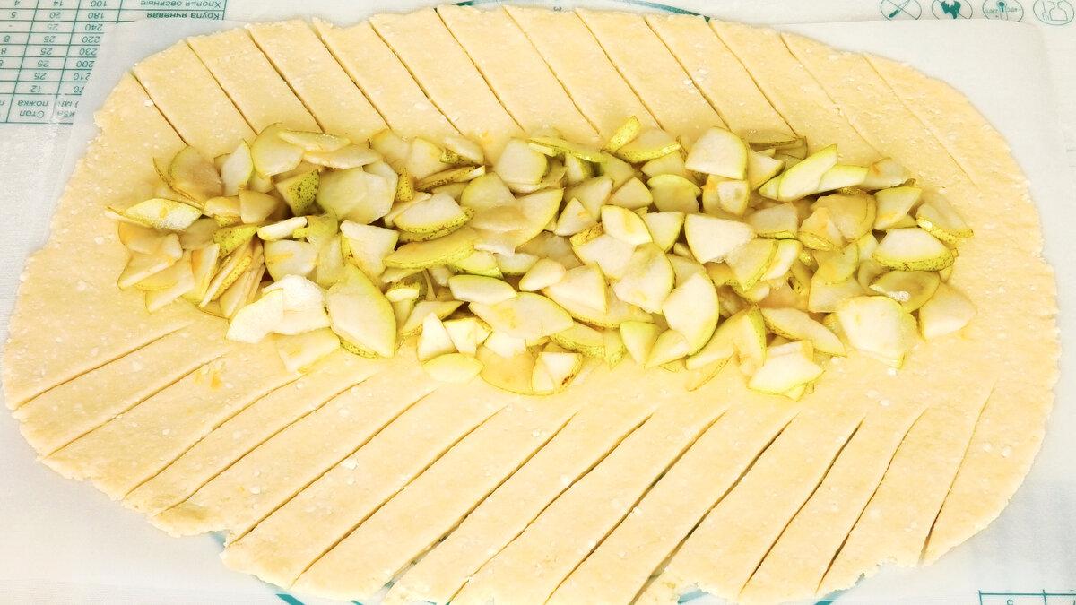 Готую ось таку швидку, легку плетінку з грушами. Для неї я використовую дуже смачне сирне тісто, воно м’яке і відмінно підходить до соковитих ніжних груш.