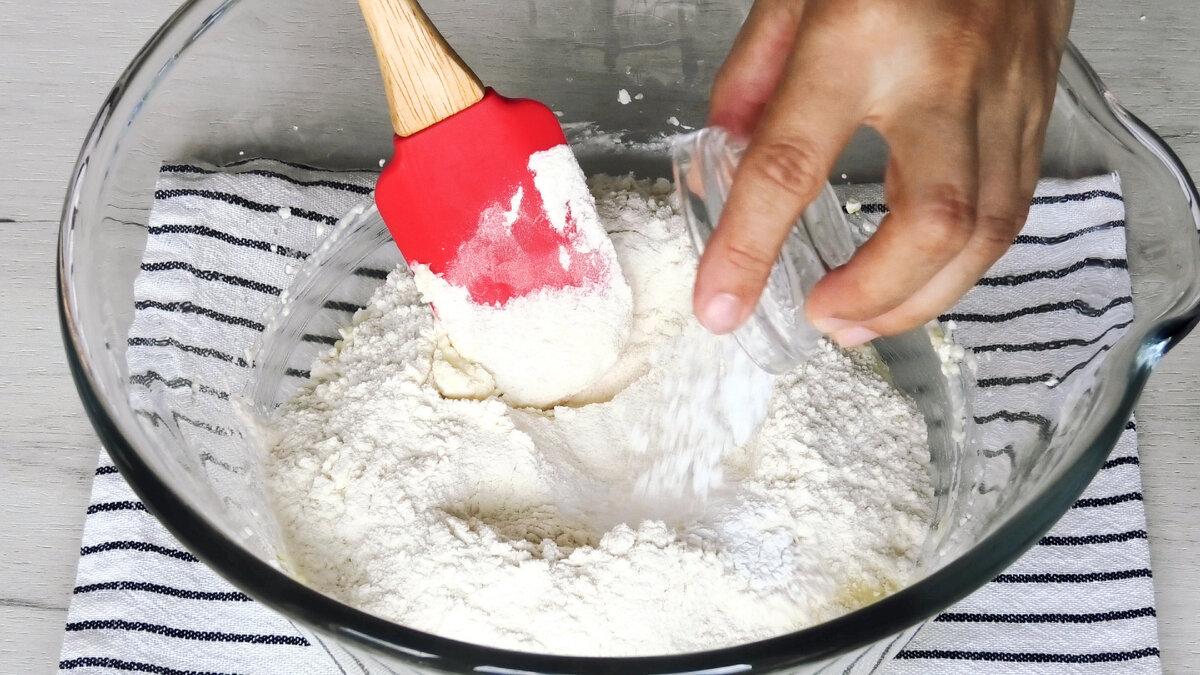 - Поступово ввести все борошно і розпушувач, замісити м’яке тісто.
