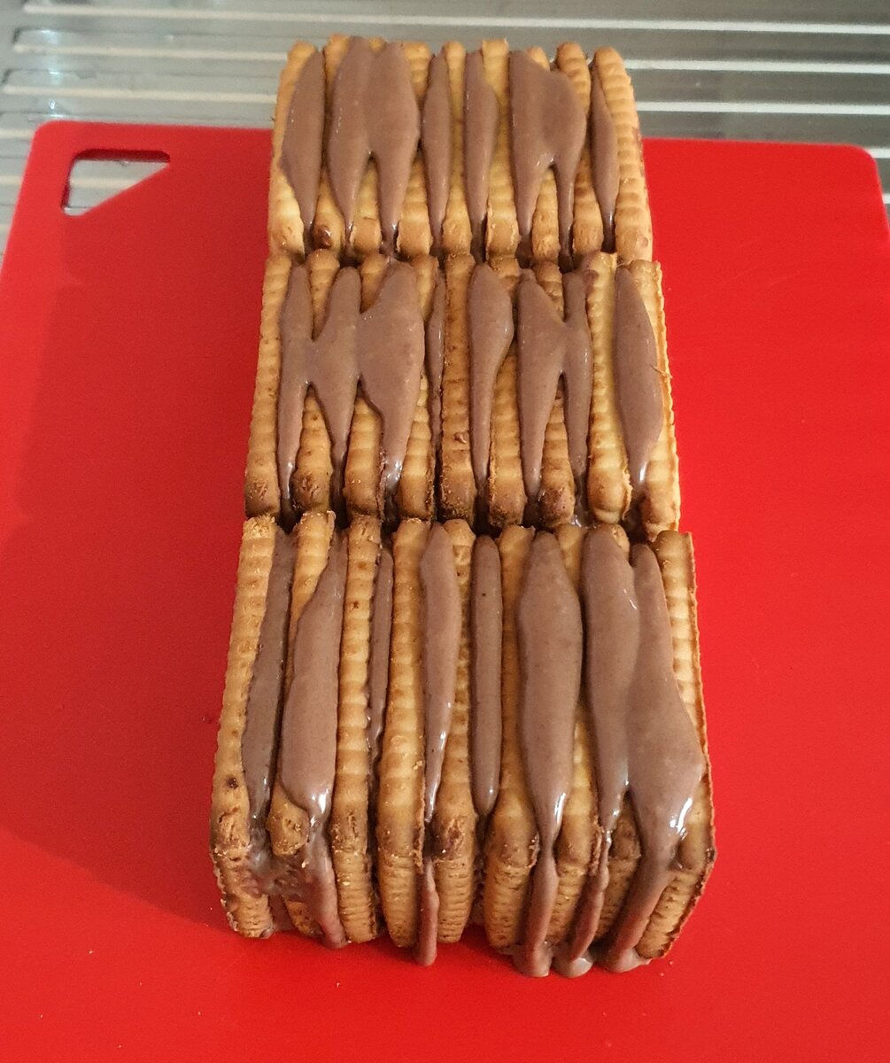 Ставимо так, щоб печиво стояло вертикально. Викладаємо всі печива в кілька рядів.