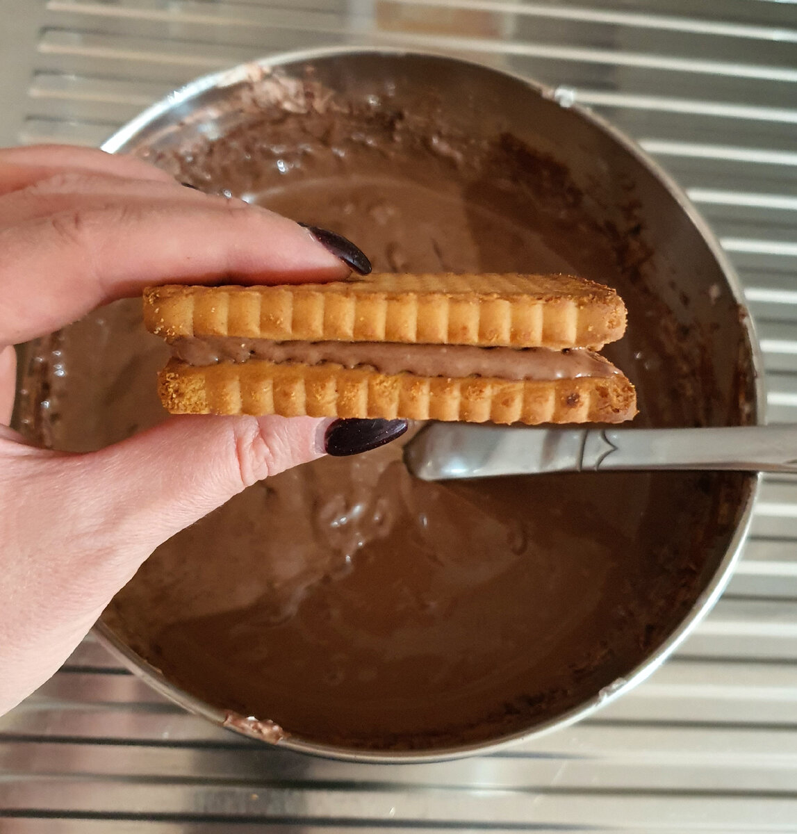 Змащуємо печиво кремом, зверху кладемо ще печиво.
