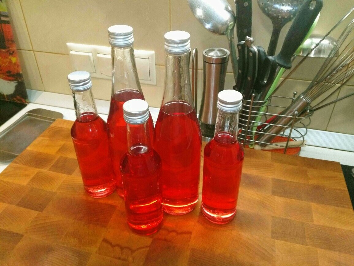 Розливаємо настоянку по пляшках, закупорюємо і відправляємо в місце зберігання. Їй треба дати відпочити тиждень-два і тоді смак стане рівним і яскравим. Рецепт підходить для будь-яких ягідних настоянок.