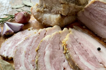 М’ясо неймовірно ароматне і дуже смачне! На бутербродах просто чудово! Та й взагалі, закуска виходить на будь-який випадок та привід. Ми з таким м’ясом яєчню вранці смажимо, на бутербродах з гірчицею їмо, та й як нарізочку до свята теж робимо. Дуже смачно! Приготуйте і спробуйте рецепт відмінний і перевірений часом!