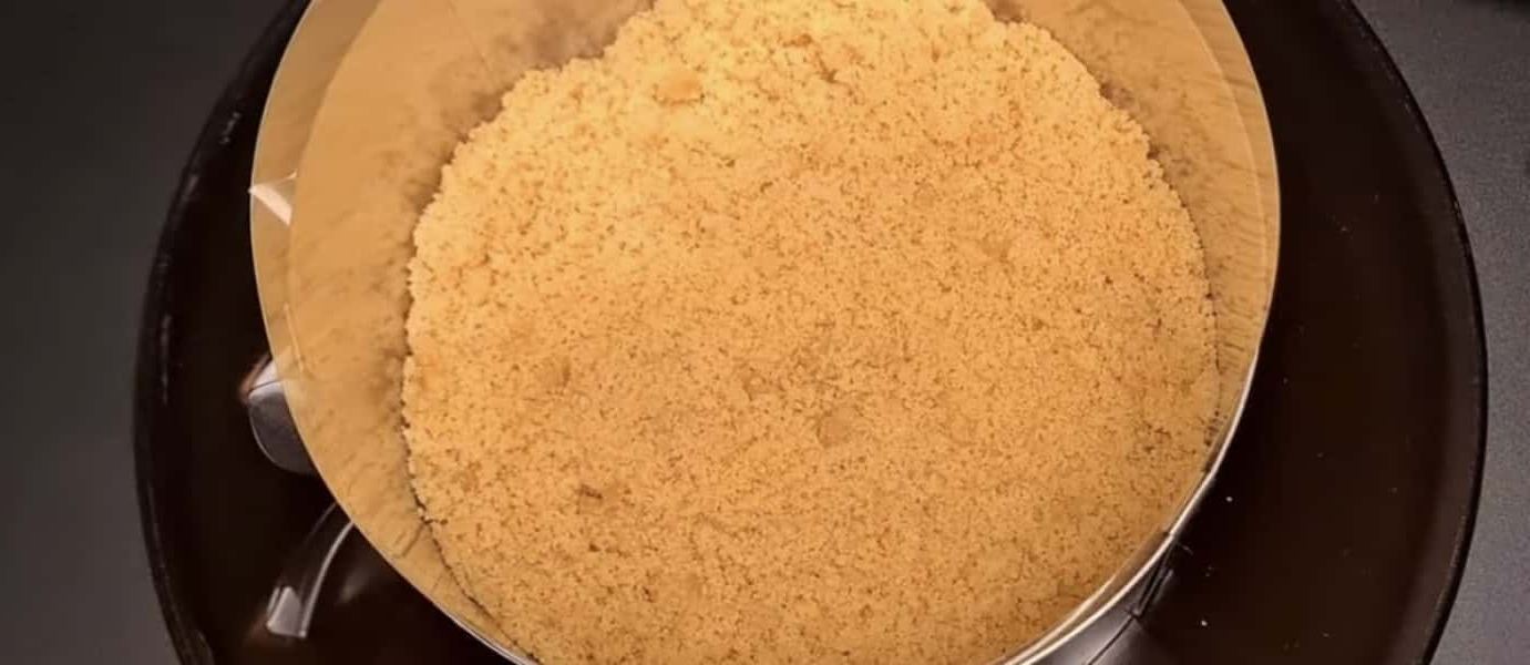 Висипаємо у форму 18 см і притискаємо.